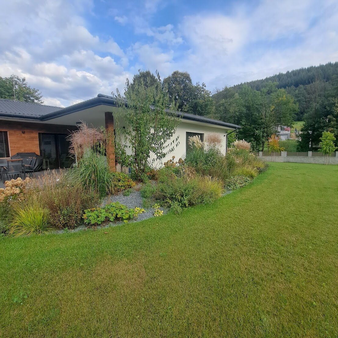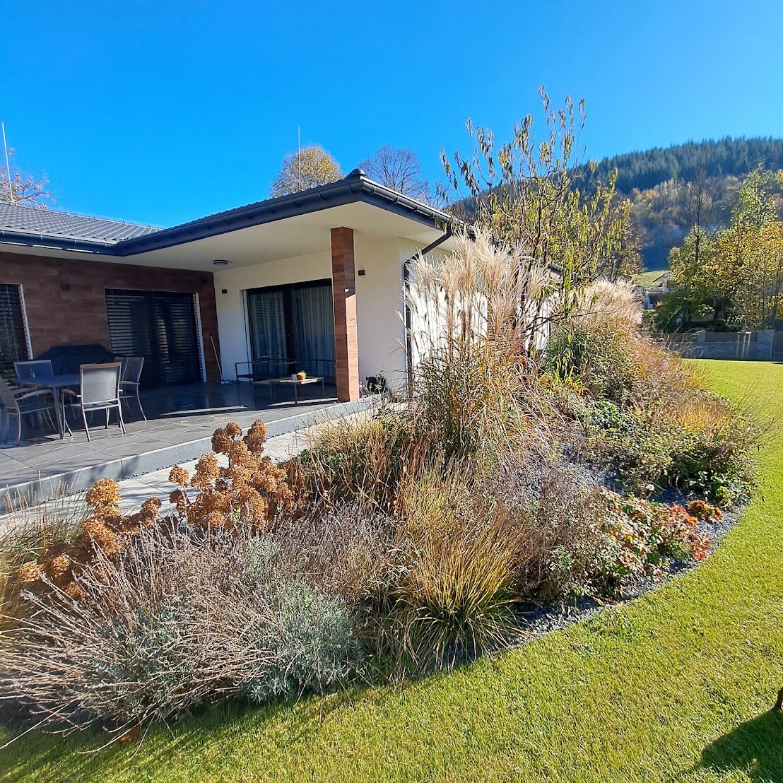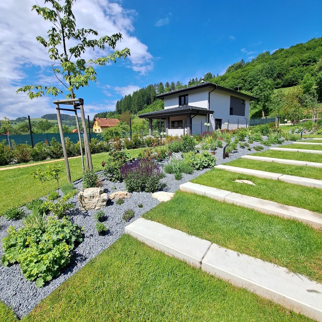 Pri realizáciách kladieme veľký dôraz aj na prepojenie záhrady s domom. Okrasná záhrada nemá byť oddeleným svetom, ale prirodzeným pokračovaním bývania. Terasy, chodníky, múriky či pergoly navrhujeme tak, aby ladili s architektúrou domu a zároveň podporovali celkový dojem zo záhrady. Vďaka tomu vzniká harmonický priestor, ktorý pôsobí ucelene a premyslene.